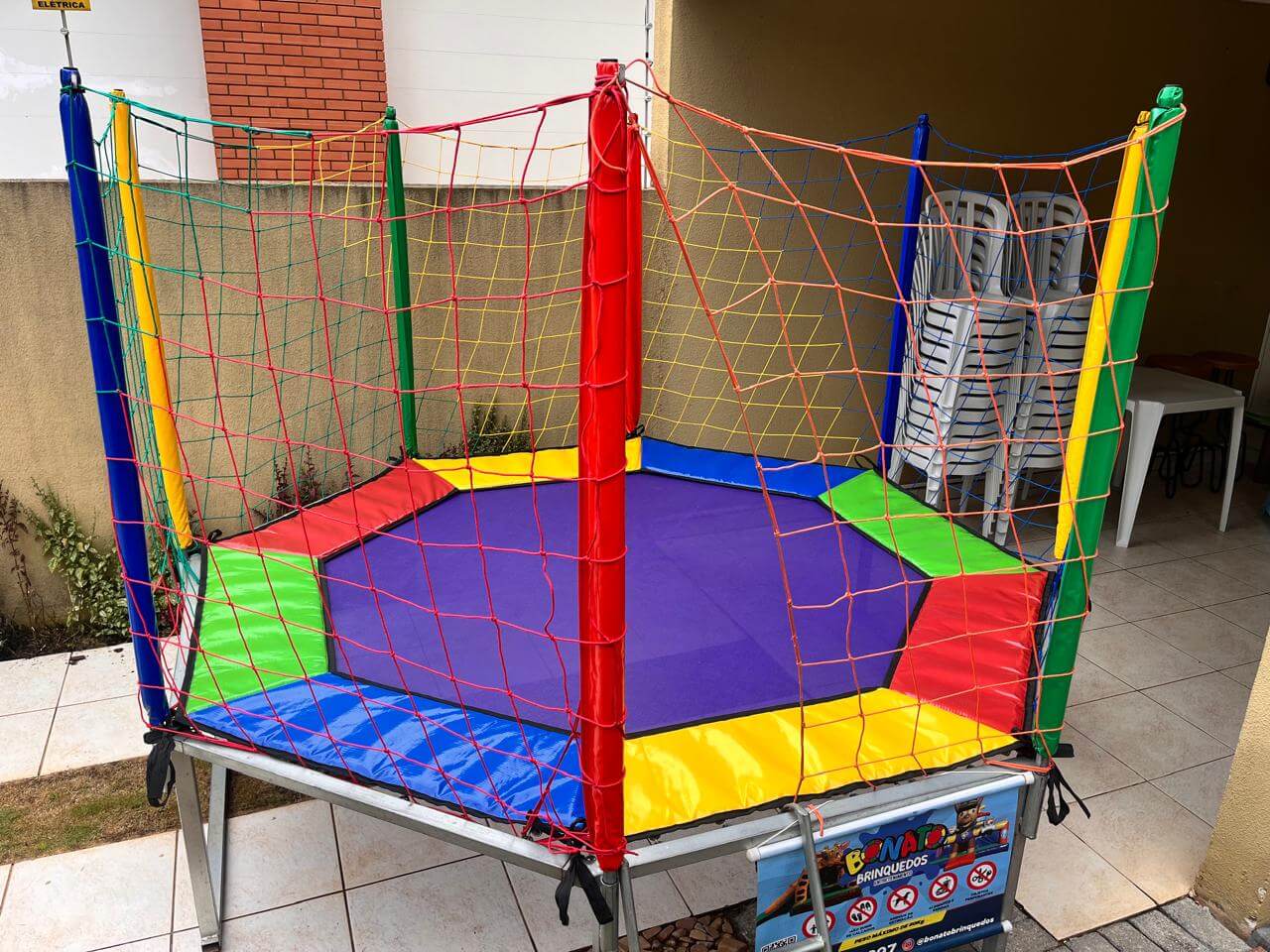 🛡️ Estrutura: aço galvanizado, molas reforçadas, lona colorida de alta resistência e rede de proteção completa