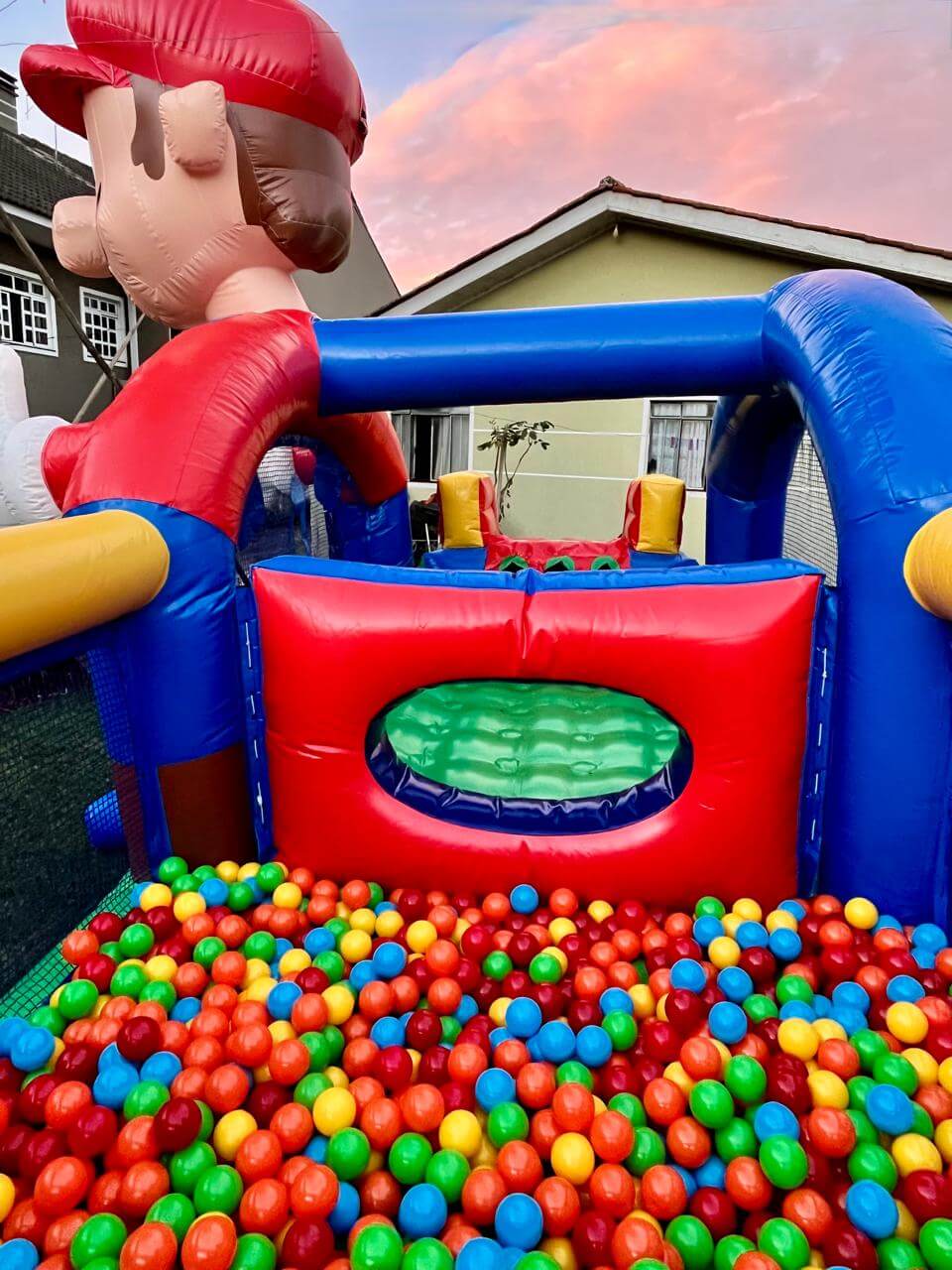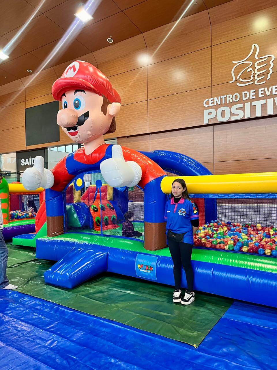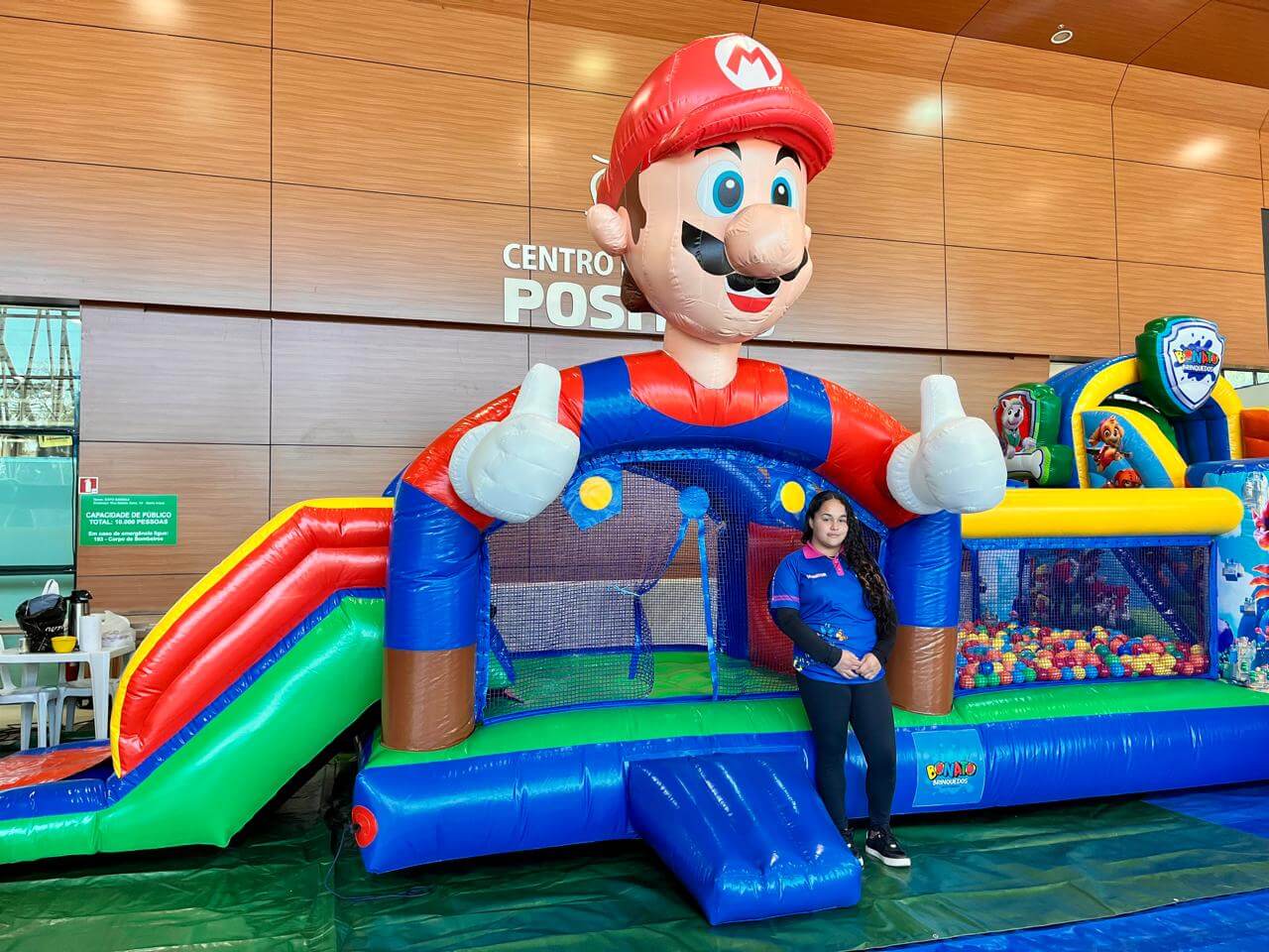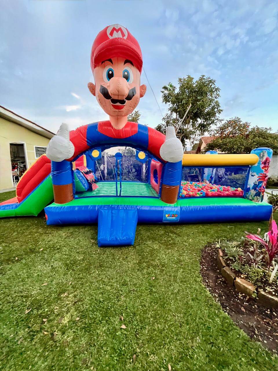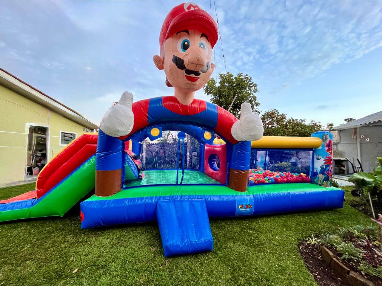 O Multiplay Super Mário 3 em 1 é um brinquedo inflável diferenciado e exclusivo, que combina três atrações em um só espaço: