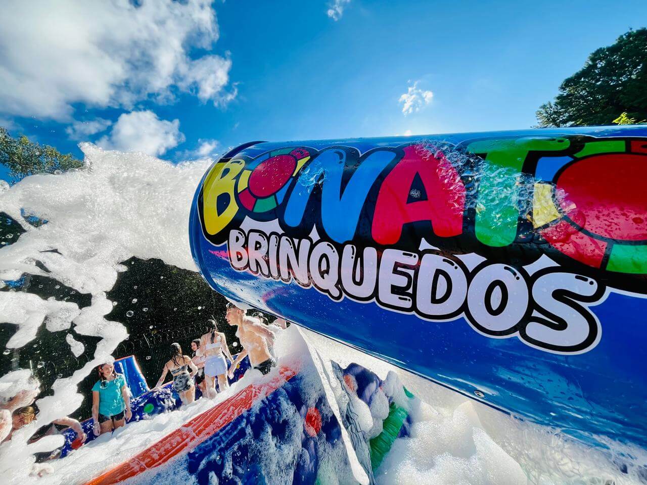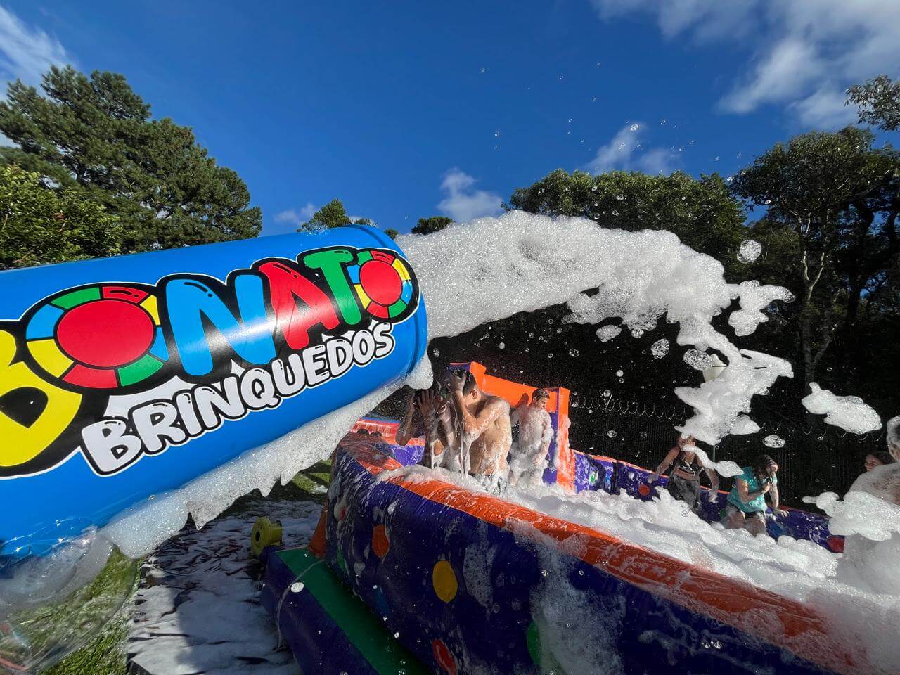 Um equipamento potente e seguro que lança espuma em grande quantidade, criando uma verdadeira chuva de alegria para todas as idades!
